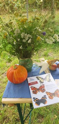 4. Der Blumenstrauß auf dem Bild gibt uns den ersten Eindruck auf die zunehmende Vielfalt der Blühpflanzen auf der Wiese. Voraussetzung ist die ständige Balkenmäher-Mahd und Abfuhr des Heus, da sonst die Wiese nicht ausmagert.