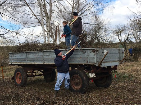 "Frühlingsputz" im Kaupenwiesengraben. Wir danken für die Hilfe beim Entsorgen des Schnittguts der Baumkronen.