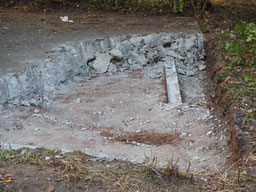 Das beauftragte Unternehmen hat mit dem Abbruch der Betonplatte begonnen. Ca. 10 cbm Beton und 4 Stahlträger sind fachgerecht zu entsorgen.