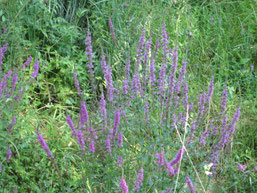 In der Nähe des ersten, entschlammten Himmelsteiches hat der Gewöhnliche Blutweiderich - Lythrum salicaria - seine Heimat gefunden. Er wächst gut auf unserem Auengley.